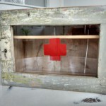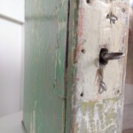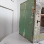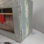 Hier handelt es sich um eine schönes kleines Arzneischränkchen zum aufhängen im Shabby-Chic Stil. Das Schränkchen wurde gesäubert, innen mit Schellack gestrichen und außen mit Dosenwachs aufpoliert.